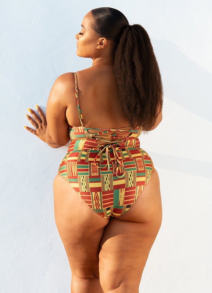 Experience a world of ‘unity in diversity’ as you wear your Luxury Classic Kente Print Swimsuits.