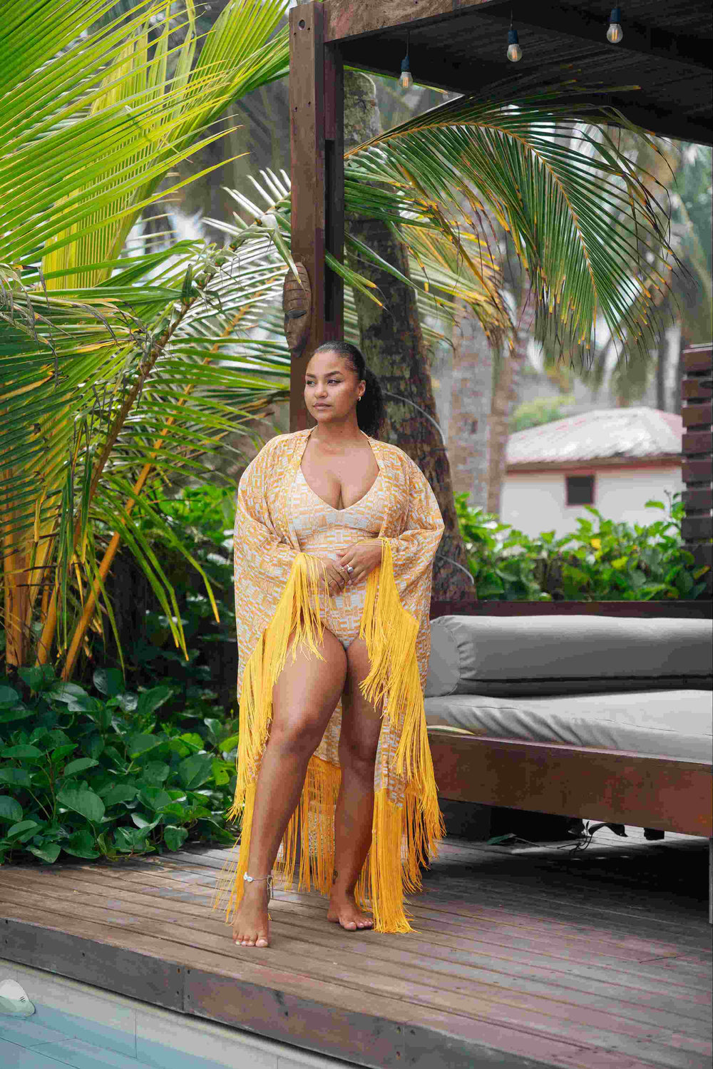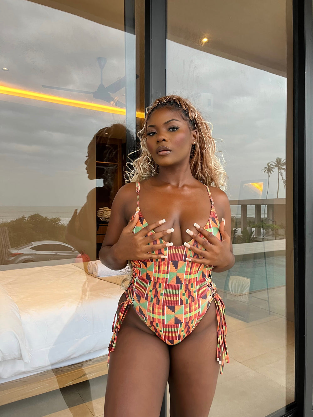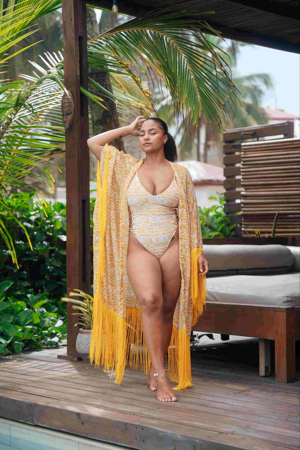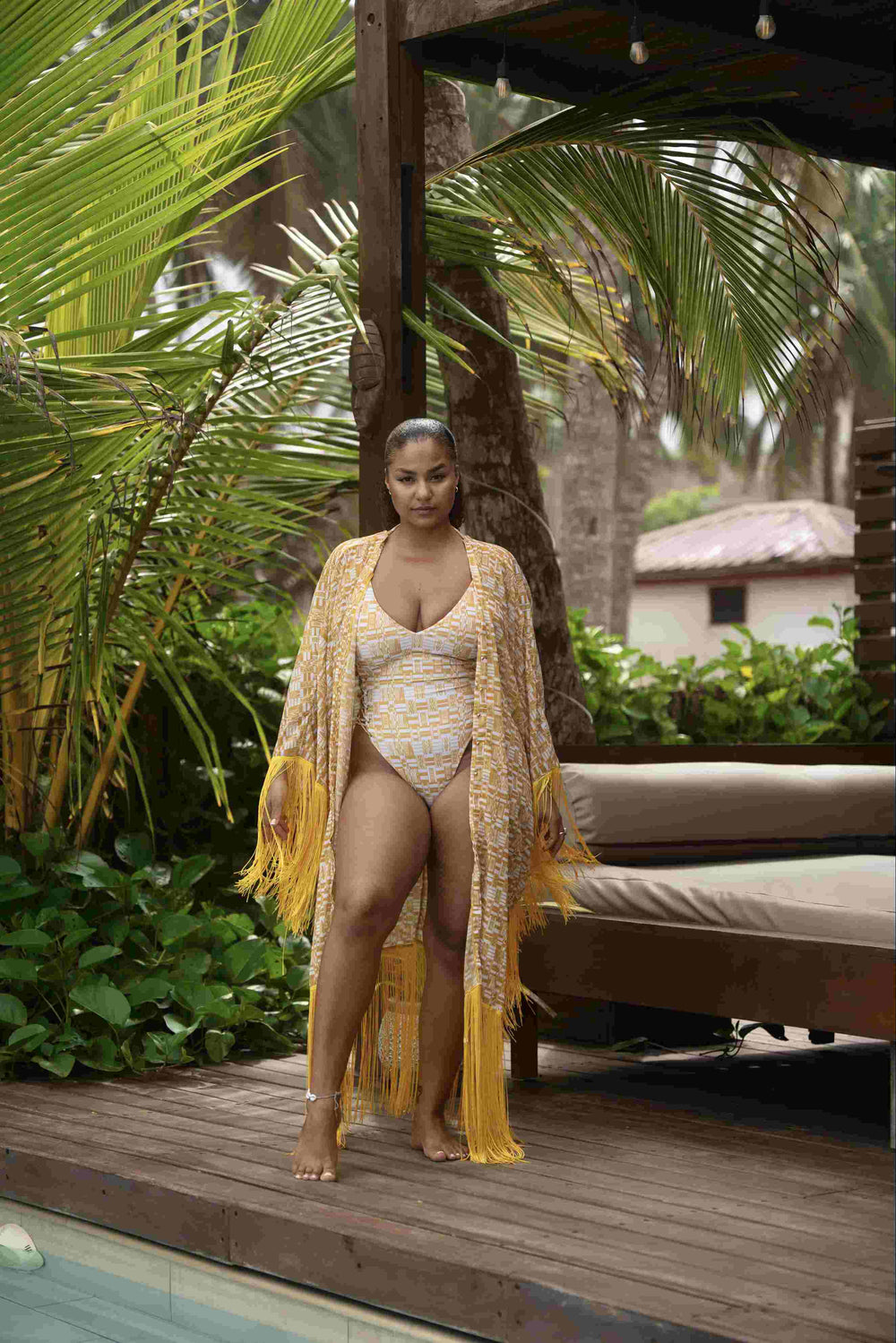 The YAA YAA lace-up, one-piece swimsuit comes with adjustable straps with metal bead details.
