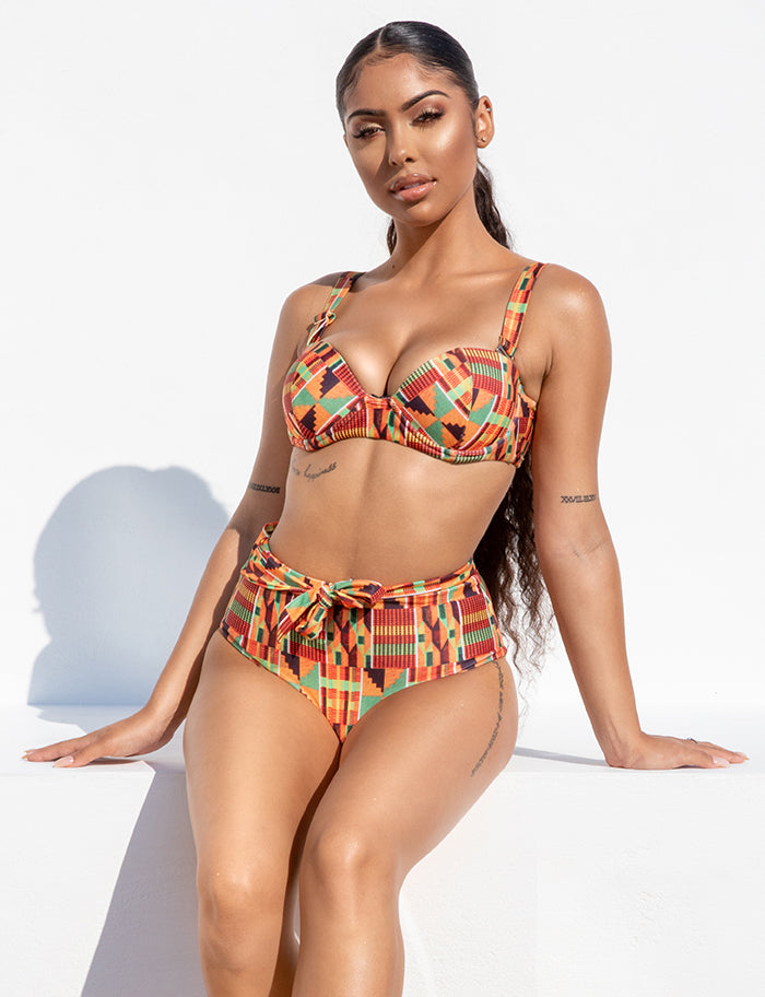 Experience a world of ‘unity in diversity’ as you wear your Luxury Classic Kente Print Swimsuits.