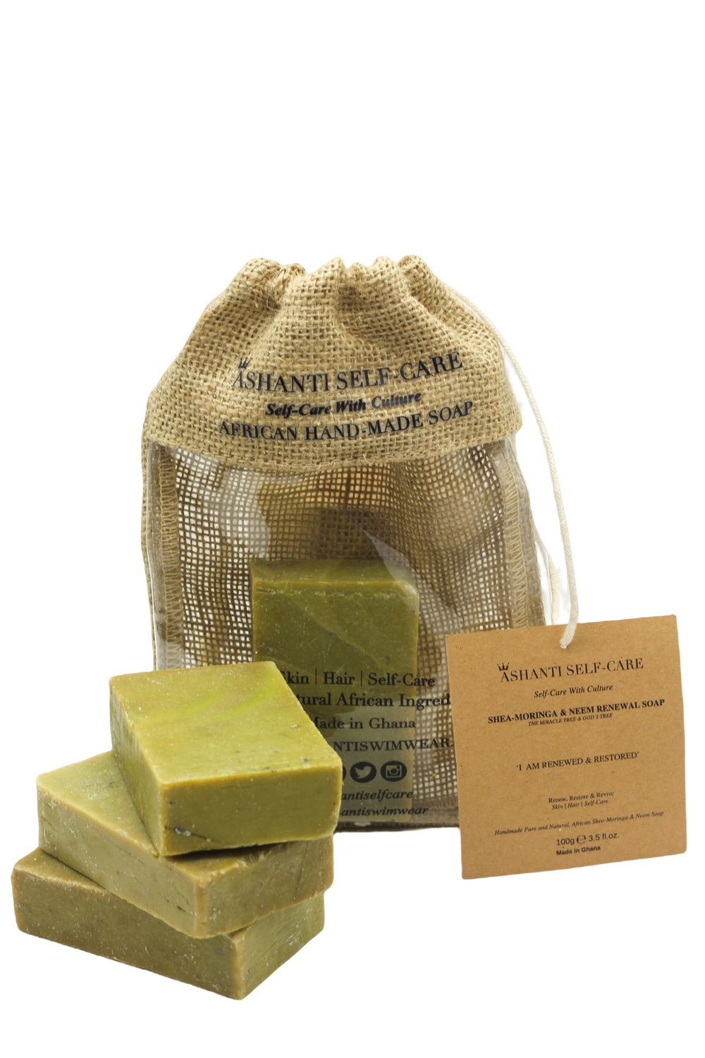 10.Shea-Moringa & Neem Renewal Soap Ingredients: Sodium Cocoate (Virgin Coconut Oil), Butyrospermum Parkii (Unrefined Shea Butter), Moringa Oleifera Leaf Extract (Moringa Leaf Powder), Sodium Hydroxide, Moringa Oleifera Seed Oil (Moringa seed oil), Azadirachta Seed Oil (Neem Oil), Mentha Piperita (Peppermint) Essential Oil, Rosmarinus Officinalis (Rosemary) Leaf Essential Oil, Melaleuca Alternifolia (Tea Tree) Leaf Essential Oil, Aqua (Water)