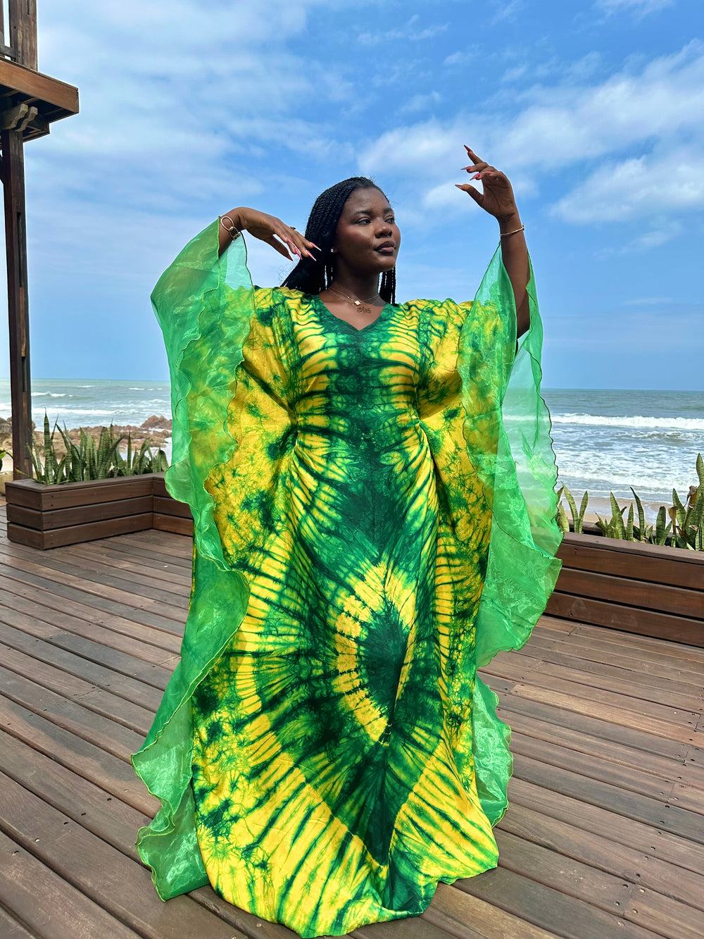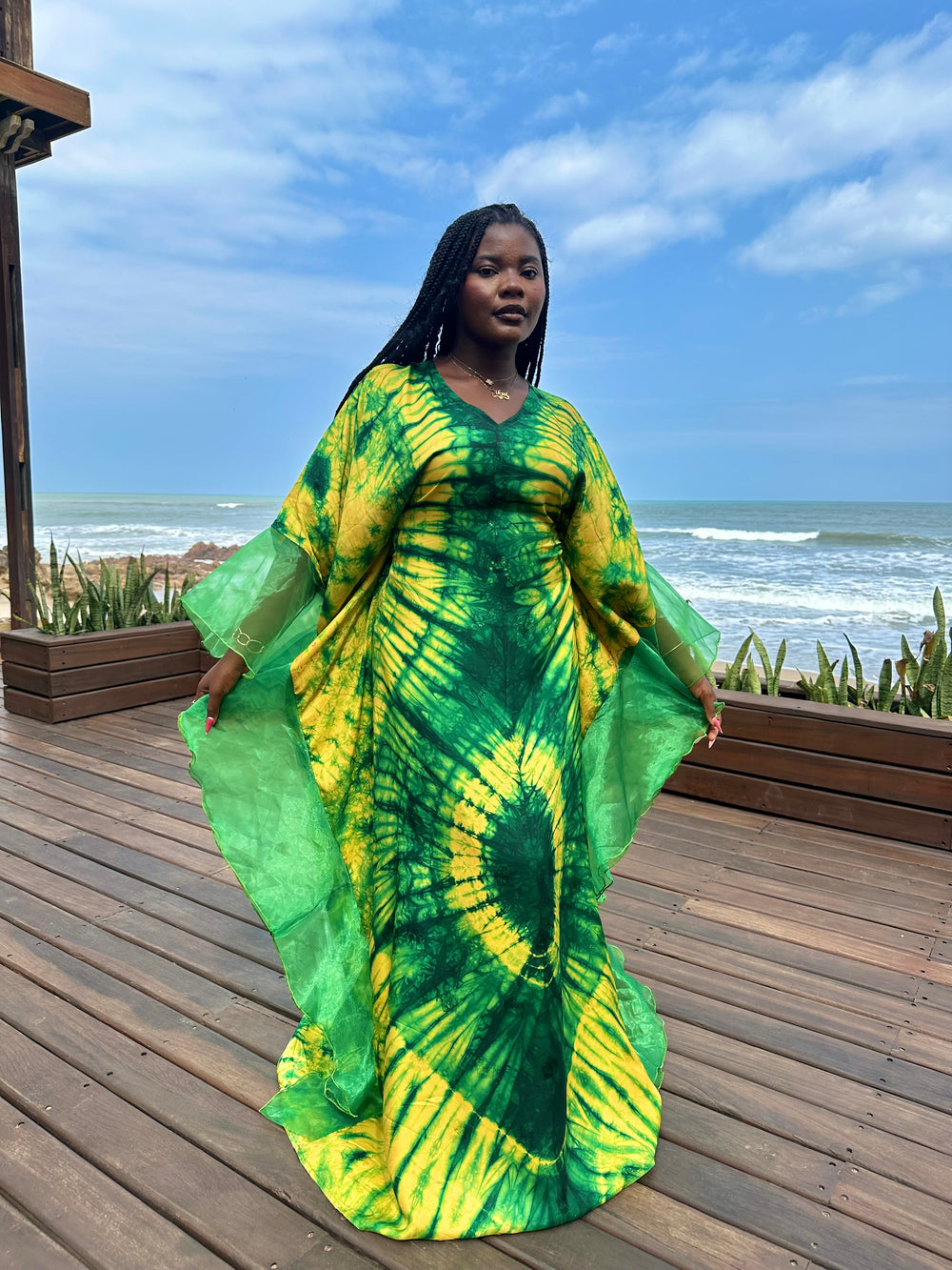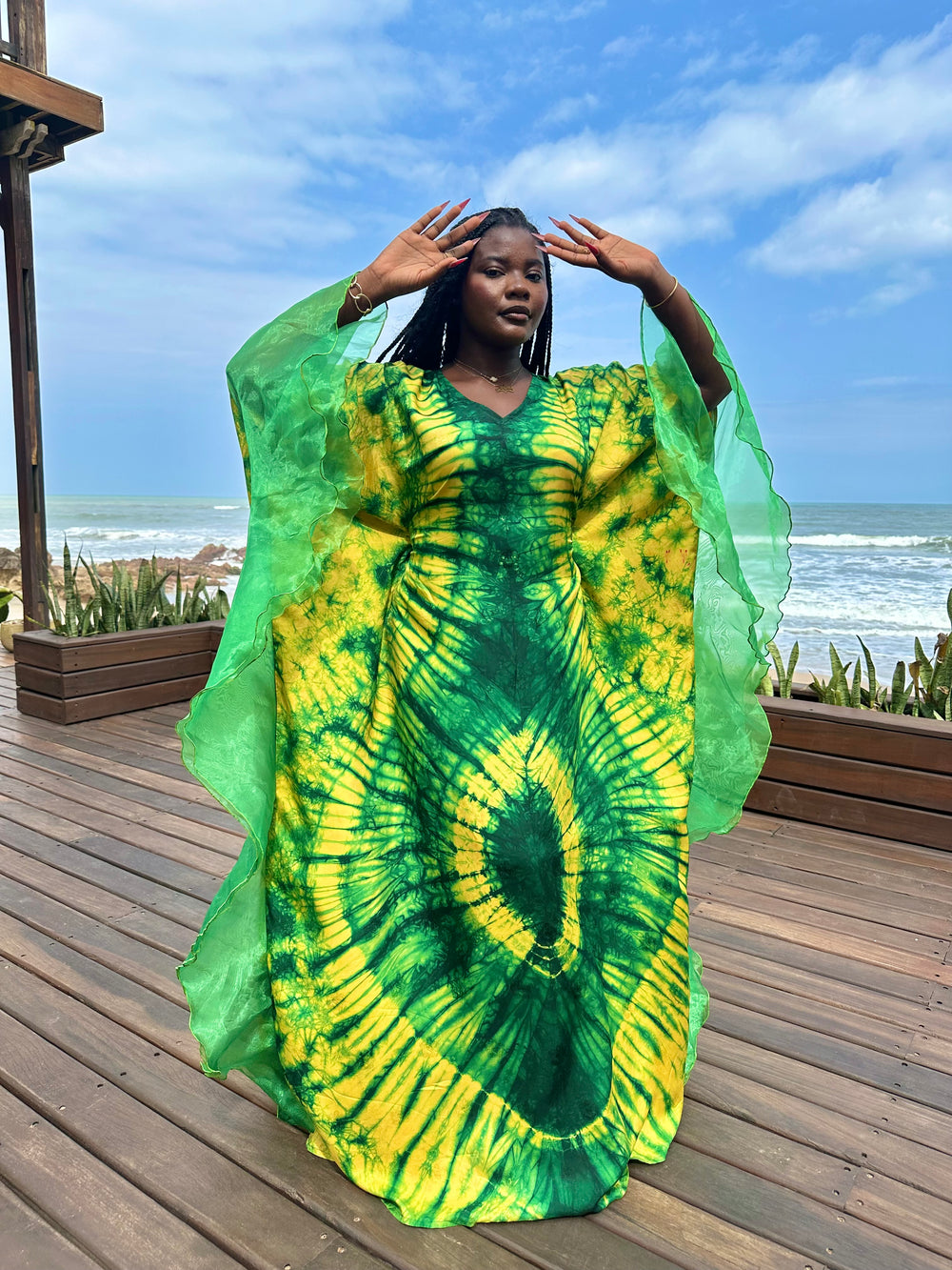 ‘OHENEBA’ BOU BOU ADIRE, African handmade tie & dye kaftan dress. Command every room you enter, take up space and turn heads like the Rich Auntie you were born to be in this Bou Bou.