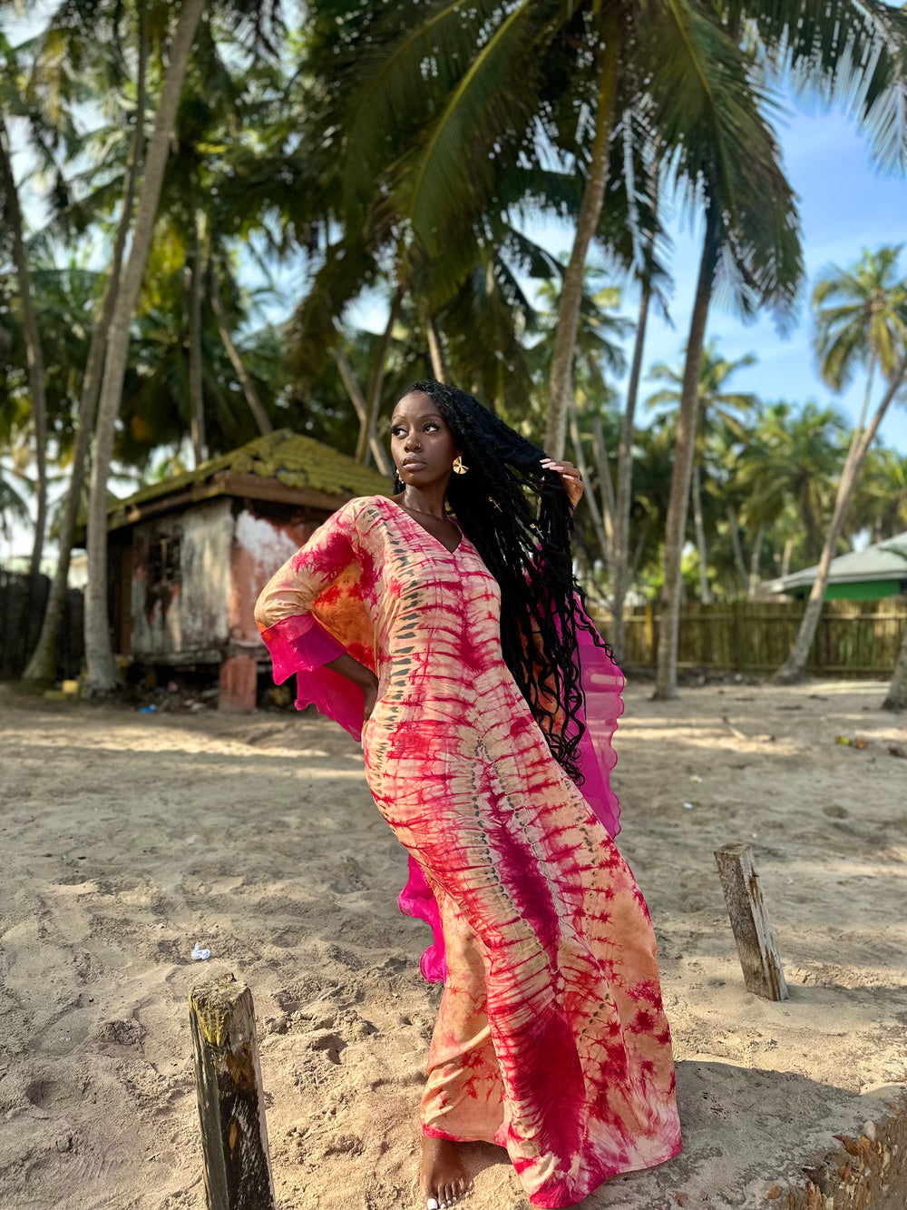• Versatile & Regal: Whether you’re hosting a Bou Bou Birthday Brunch, unwinding at a sunset soirée on the beach, attending a lavish African wedding or simply reigning supreme & savouring every moment in your own home, the ‘OHENEBA’ BOU BOU – ADIRE empowers you to exude confidence without sacrificing comfort. This kaftan is the ultimate Rich Auntie uniform and it was designed for main character moments.